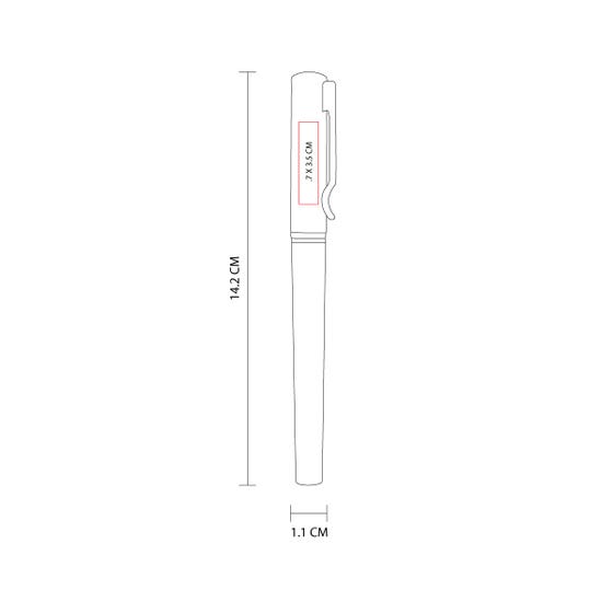 Bolígrafo metálico con tapón. Color en dos tonos de gris. Incluye estuche.