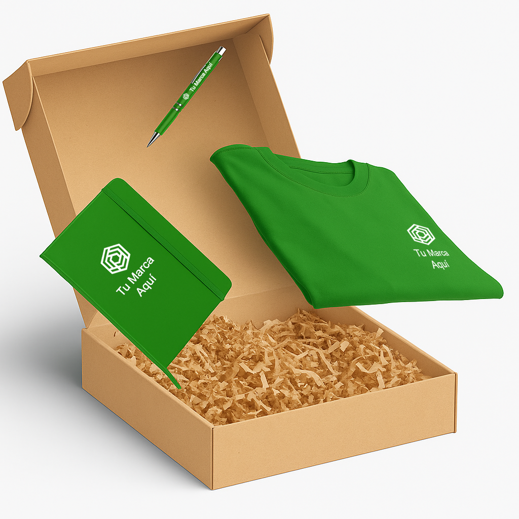 ✔️ Caja kraft con relleno decorativo y sticker exterior