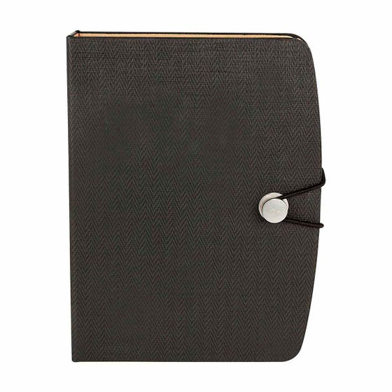 Libreta con 70 hojas de raya. Incluye elástico para cerrar, bolígrafo ecológico, notas amarillas y banderillas adheribles de diferentes colores.
