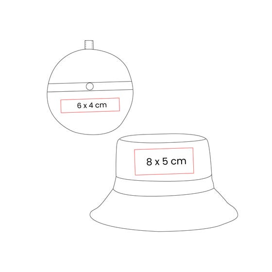 | Área | 8 x 5 cm Sombrero / 6 x 4 cm Bolsa Plegable |