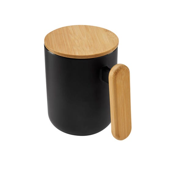 Taza de cerámica terminado mate. Incluye asa y tapa de bambú. El bambú es un producto natural el cual puede presentar variaciones en tonalidades y vetas.