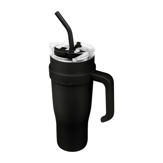 Termo doble pared. Cerrado al vacío. Pared interna y externa acero inoxidable. Cuerpo con terminado rugoso. Tapa de plástico y sobretapa con sistema push, incluye una ranura para popote con tapón de silicón. Su cuerpo de amplia capacidad lo hace perfecto para compartir o disfrutar de varias tazas de tu bebida favorita, además su asa ergonómica permite un transporte fácil y cómodo. Mantiene la temperatura caliente por 12 hrs y la temperatura fría por 20 hrs. Capacidad de 40 Oz. Base de 8.2 cm de diámetro. Incluye popote metálico con boquilla de silicón y caja individual.