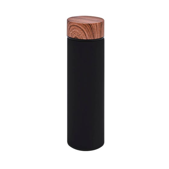 Doble pared. Cerrado al vacío. Pared interna y externa de acero inoxidable. Terminado tipo rubber. Incluye tapa de plástico simulación madera y filtro de acero inoxidable. Mantiene temperatura caliente 6 hrs y temperatura fría 8 hrs aproximadamente. Incluye caja individual.