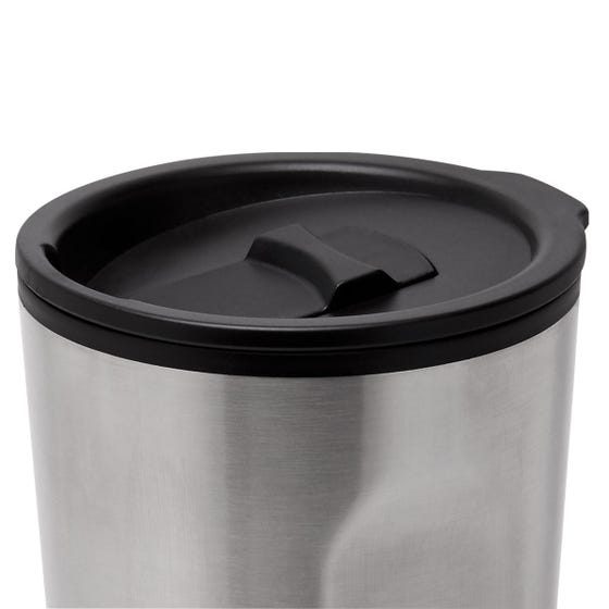 Doble pared. Pared interna plástico, pared externa acero inoxidable. Tapa de plástico con válvula de seguridad. Incluye caja individual.