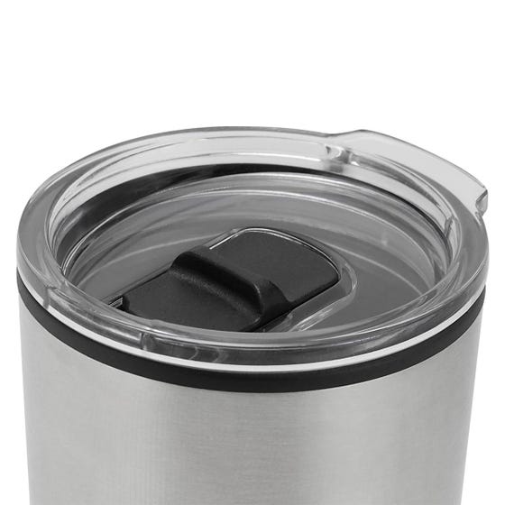 Doble pared. Pared interna plástico, pared externa acero inoxidable. Tapa de plástico con válvula de seguridad. Incluye caja individual.