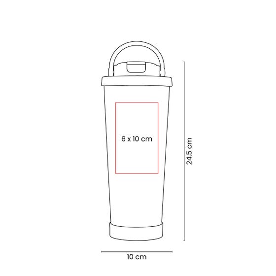Termo doble pared. Cerrado al vacío. Pared interna y externa acero inoxidable. Terminado tipo rubber que lo hace suave al tacto. Su tapa versátil con cierre de rosca te permite disfrutar de tus bebidas de dos maneras diferentes; por medio de su convencional sobre tapa con sistema push o bien, usando la ranura para popote con tapón. Incluye un popote con doble ancho de plástico, ideal para cualquier bebida. Además, cuenta con un cepillo, que te ayudará a mantenerlo limpio. Su diseño incorpora un asa que facilita llevarlo a todos lados y su base removible de silicón antiderrapante, evitará al máximo raspaduras. Mantiene la temperatura caliente por 6 hrs y la temperatura fría por 12 hrs. Capacidad de 24 Oz. Base de 7 cm de diámetro. Incluye caja individual.