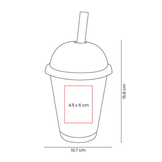 Vaso de plástico de una pared. Cuenta con una tapa tipo domo con cierre push, incluye un popote ancho, que lo hace ideal para disfrutar una gran variedad de bebidas con difeerentes topping o incluso crema batida. Capacidad 17 Oz. Base de 6.3 cm de diámetro.
