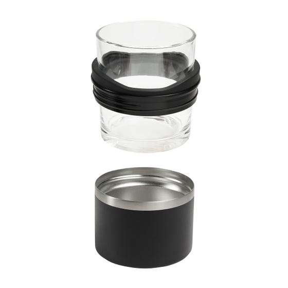 Disfruta de tu whisky favorito a cualquier hora del día. Incluye vaso de cristal y porta vaso de doble pared de acero inoxidable diseñado para mantener tu bebida fría sin diluirla. Ideal para los verdaderos amantes del whisky, este vaso combina elegancia y funcionalidad, manteniendo la temperatura de tu cóctel por más tiempo mientras preserva su sabor puro. Su diseño premium es perfecto para quienes aprecian cada detalle de su experiencia de degustación. Incluye caja individual.